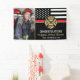 Este diseño cuenta con una bandera de bomberos con rayas blancas y negras y una delgada franja roja. "Felicitaciones" y la insignia de un bombero se sienta por encima del nombre del bombero que se graduó. ¡Celebren con estilo con este cartel de fotos de personalizable!