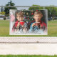 Cartel de la fiesta de cumpleaños de los gemelos para cualquier edad. Personalizado con una foto, el texto del guión "feliz cumpleaños", la edad, el nombre del chica o del niño, y el espacio en la parte inferior para añadir un mensaje. Para cambiar la ubicación de la foto: pulse sobre el botón para personalizar, pulse sobre "recortar" y mueva la imagen.