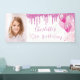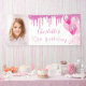 Lona Foto de cumpleaños purpurina rosa chica en monogra