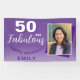 Pancarta de fondo para foto de fiesta de cumpleaños 50 y fabuloso cumpleaños número 50 púrpura. Gran pancarta para la fiesta de cumpleaños número 50 con una foto personalizada, cita inspiradora y divertida 50 y fabulosa. El fondo es púrpura vívido y el texto es de color blanco. Personalice el letrero con su foto, su nombre y la edad, y haga su propio fondo divertido para la fiesta de cumpleaños. Es ideal para la fiesta de cumpleaños de una mujer.