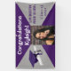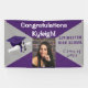 Este es un banner de vinilo de grado al aire libre con manchas metalizado. Se puede personalizar completamente con la foto, el nombre, el mensaje, el año de clase y el nombre de la ciudad y la escuela del estudiante. Incluye una pintura de casquillo y diploma, que también se puede personalizar.