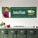 Anuncia al mundo que tu graduado favorito ha alcanzado su meta con este impresionante, simple y moderno banner de foto personalizado. Tipografía blanca, gráfica y en negrita, y un icono de gorra de oro falso sobre un fondo verde cazador. A la izquierda, agrega una foto de tu elección. Personaliza el texto personalizado con el nombre de tu graduado, la mascota o el nombre de la escuela y el año de graduación. Elige entre opciones para interiores o exteriores. También están disponibles invitaciones, tarjetas de agradecimiento, adornos para gorras, abanicos, servilletas, platos y otros artículos de graduación en esta colección moderna y elegante. ¡Garantizado para preservar los recuerdos queridos de su ocasión especial!