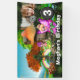 Un bonito diseño de arcoiris brillante sobre exuberantes campos verdes llenos de árboles de color verde y caótico. Una casa de champiñones con pequeñas puertas y ventanas aparecen en la orilla y dos coloridas hadas de pixie con el pelo púrpura y rubio respectivamente están sentadas afuera disfrutando del polvo de hadas y de hongos salvajes. Un gran círculo negro aparece en la esquina derecha con la edad y edad de los chicas de cumpleaños que es una plantilla de fotos para tu hermosa fotografía de los niños.