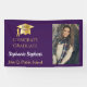 Celebra a tu graduado favorito con un banner de foto morado con un gorro de graduación de tono dorado. Simplemente agrega el año de clase del graduado, nombre y escuela o universidad, y foto y agrega al carrito y listo. Diseño original de Holiday Hearts Designs (derechos reservados).
