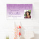 Bienvenidos a esta moda, glamurosa pancarta de fotos fiesta de 30 años, con un brillante borde color morado de imitación de un purpurina goteo y un fondo morado. Reemplace fácilmente la imagen de muestra con una foto del invitado de honor. Personalízalo con su nombre en escritura a mano morada, con el cumpleaños y la fecha a continuación en letra sans serif.