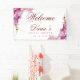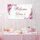 Pancarta Fiesta de orquídeas tropicales. Este sencillo y elegante cartel de bienvenida está decorado con orquídeas moradas y magenta, y el fondo del diseño es blanco, aunque se puede cambiar a cualquier color que se desee.