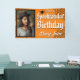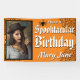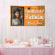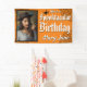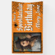 Muestra este cartel de cumpleaños de fotos de Halloween en honor de la persona de cumpleaños. Personaliza con su nombre, edad y foto. Esta pancarta naranja y negra espeluznante presenta una araña adorable colgando de una telaraña con fuentes navideñas espeluznantes.