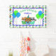 Oso personalizado dibujado a mano, zorro y mapache carteles de cumpleaños de niños de Woodland, globos azules y verdes.