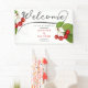 Celebre su día especial con este moderno cartel fiesta de bienvenida en blanco y negro. Con una caligrafía negra elegante y un ilustracion vintage de cerezas rojas de bonito con hojas verdes sobre un elegante fondo blanco, este minimalista diseño le da un toque romántico a su decoración boda. Personalice este signo boda con los nombres de la novia y el novio en la tipografía clásica de color rojo cereza y la fecha del evento en negro elegante. Explore la colección completa de BODAS CHERRY para combinar productos y variaciones de color, creando un estilo sofisticado y coherente para su celebración. Perfecto para bodas de verano de moda, duchas de novias y ocasiones festivas al aire libre, este banner le aporta un toque moderno y atemporal a su evento. ¡Haga que su boda sea inolvidable con este elegante diseño de personalizable!