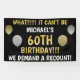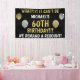 La decoración de la fiesta de cumpleaños número 60 con humor de cumpleaños número 60 y falsos globos purpurinoso en oro y plata.