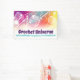 Universo divertido de acuarela con bolas de hilo y ganchos de ganchillo en este banner de exhibición de stand de artesanías para tus proyectos de ganchillo, personalizado con tu elección de fuentes y texto.
