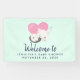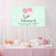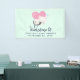 Pancarta de la ducha de bebé con un adorable ilustracion gráfico. Un gato blanco gatito con una linda imagen impresa en su piel. Dormir pacíficamente. Un gran corazón rosado detrás de ella y algunas pequeñas estrellas también. Fondo verde suave.