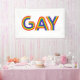 Esta obra de arte muestra la palabra gay en una colorida fuente arcoiris.