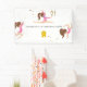 Gimnasia rosada y purpurina de oro temática chica 21 cumpleaños banner personalizable a sus especificaciones de evento.
