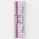 Lona Gingham púrpura y blanca con banner de cumpleaños