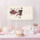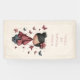 Banner with an image of a young girl holding a butterfly wand. An adorable unique retro style doll with rosy cheeks. Butterflies flying all around. Sweet and cute.