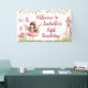 Fairy Tale Dream Birthday Banner: Make your child's birthday a fairy tale come true with our enchanting Banner. The design showcases a charming string of stars, mushrooms with a frog, and a cute fairy with a magic wand, all set against a soft light pink background with a distant castle. Personalize the name and age. The banner is part of a collection. Bring the magic to life – buy yours today!