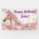Celebrate her big day with this beautiful horse-themed birthday banner designed just for girls who love ponies, florals, and pastels. Featuring a watercolor horse with soft pink and purple accents, it’s the perfect statement piece for a cowgirl party or equestrian birthday theme.