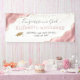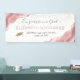 Celebrate her milestone in style with this girly graduation banner, featuring blush pink watercolor agate sections trimmed with faux gold glitter in the upper left and lower right corners. The words "Congrats to our Grad" (or text of your choice) appear in elegant charcoal gray handwriting script above your graduate's name in blush pink sans serif font. Below, add the name of her school and her year of graduation in charcoal sans serif. Faux gold confetti flutters down from the top edge, and a faux gold glitter mortar board cap appears on the lower left.