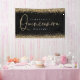 Glam Gold Purpurina Nombre Bienvenida Quinceañera Negro. Los elegantes purpurinas de imitación dorada están en la parte superior e inferior. Quinceañera se define en un estilo informal de escritura a mano y el resto del texto que puedes personalizar fácilmente.