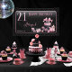 El glamuroso diseño de 21 años, inspirado en la costura francesa, rosa y negro, incluye un pastel de caja gorra, un estilete rosa y una bolsa de maquillaje entre varios regalos de cumpleaños sin abrir y deliciosos pastelitos. Perfecto para celebrar fiestas de cumpleaños. La edad se crea en un tipo de letra falso purpurina rosa.