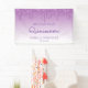 Bienvenido a los huéspedes con esta moda, glamurosa pancarta de la quinceañera, con un brillante borde de goteo purpurina morado y un fondo oscuro morado. La palabra "Quinceañera" aparece en el guión de escritura a mano morada. Personalízalo con su nombre y la fecha de abajo en letra púrpura sans serif.