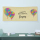 Crear un banner personalizado para fiestas y otros eventos especiales. Este cartel muestra mis ilustraciones pintados de globos de aire caliente en brillantes colores arcoiris junto con tu texto personalizado.