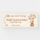 Celebra la dulce llegada de tu pequeño con esta encantadora pancarta de baby shower “Up, Up and Away” que presenta un osito de peluche flotando con globos de acuarela en neutros suaves. Acentuada con estrellas pintadas a mano y texto con letra elegante, esta pancarta de género neutral es el fondo perfecto para baby showers, mesas de postres o cabinas de fotos. Personalízala con el nombre del bebé y la fecha de la ducha para crear un recuerdo sincero que brinde calidez y alegría a tu celebración. Ideal para uso en interiores y exteriores, esta pancarta agrega un toque caprichoso y de cuento de hadas a cualquier tema de baby shower.