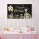 Esta imagen presenta el vestido purpurina dorado, tacón alto, globos y copa de vino sobre fondo negro.