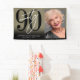 Celebrate ninety years in style with this bold and modern party banner, perfect for a milestone birthday celebration. The design on the left side features a large black “90” with a handwritten white “Ninety” layered over it for a sleek, contemporary look.