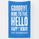 Celebra el retiro de un futuro ex compañero de trabajo con este divertido cartel que muestra el sentimiento "Adiós nueve a cinco saludos de la hora feliz" en un tipo de letra blanco y gris, con un martini de manzana inteligentemente parado por el "Y" en "Happy" en un relajante fondo azul bebé. Personalizar con el nombre de la celebración y mensajes de felicitación. Diseño © W.H. Sim. Ver más en zazzle.com/wordsofwhimsy
