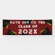 Clase creativa de 25 pancartas de fiesta grad con gorras de graduación en negro y oro y diseño de felicitaciones en fondo marrón. Para que el personalizar edite el texto para cambiar el año de clase superior.