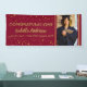 Una pancarta festiva de graduación con confeti dorado sobre fondo Burdeos. Personalice con el nombre del joven graduado, foto, nombre de la escuela/facultad y año.