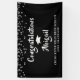 Lona Graduación Confetti Brush Script Negro y Plata