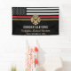 Este diseño cuenta con una bandera de bomberos con rayas blancas y negras y una delgada franja roja. "Felicitaciones" y la insignia de un bombero se sienta por encima del nombre del bombero que se graduó. Este diseño también funciona bien para los bomberos, lugartenientes o jefes que se retiran. ¡Celebren con estilo!