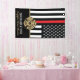 Este diseño cuenta con una bandera de bomberos con rayas blancas y negras y una delgada franja roja. "Felicitaciones" y la insignia de un bombero se sienta por encima del nombre del bombero que se graduó. Este diseño también funciona bien para los bomberos, lugartenientes o jefes que se retiran. ¡Celebren con estilo!