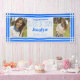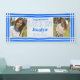 Coloca este cartel de graduación de dos fotos con la plata azul para celebrar tu graduación. Personaliza con dos fotos, nombre, escuela y año de clase. Este cartel de clase de 2024 colores escolares presenta tipografía femenina y un borde decorativo plateado y azul.