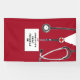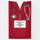 Banner de fiesta de graduación de la escuela de enfermería con un diseño creativo de uniformes rojos de hospital para la graduada de enfermería. Edite el texto para agregar el nombre y las credenciales médicas.