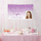 Celebra su graduación de la secundaria o la universidad con esta moda, glamorosa pancarta de fotos, con un brillante purpurina falso morado goteando la frontera y un fondo morado. Reemplace fácilmente la imagen de muestra con una foto del graduado. Personalízalo con su nombre en escritura a mano morada, con el año de clase y el nombre de la escuela debajo en letra sans serif.