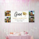 Este Banner de Graduación de Collage de fotos Blanco y Oro es una hermosa manera de mostrar el viaje y los logros de los graduados. Con un brillante fondo blanco con elegantes acentos dorados, este banner está diseñado para mostrar una colección de fotos significativas, celebrando hitos importantes en la vida del graduado. La combinación perfecta de personalización y sofisticación, este banner le da un toque único a cualquier fiesta de graduación. Es una decoración elegante y memorable que se apreciará mucho después de la celebración.