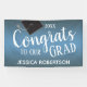 Felicitaciones a la clase de Graduación de 2020. Este banner es una opción de nombre personalizada con fondo de degradado de brillo azul. ¡Simplemente usa la plantilla para adaptarla a tus propias celebraciones! Todo el texto es ajustable y el fondo se puede apagar si es necesario.