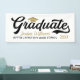 El cartel del partido de graduación presenta un diseño de tipografía simple y elegante, con un guión académico "Graduado" y una tapa de grado con acento de tacón. Personalice con el nombre de su graduado, el año de clase y la escuela secundaria. Hay que destacar que los colores dorado, negro y blanco se pueden cambiar para que coincidan con los colores de la escuela o los fiestas.