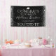 ¡Felicitaciones al graduado! Banner negro y falso purpurina de plata con texto elegante que dice - CONGRATOS, al graduado, su nombre, año de clase y la orgullosa cita '¡LO HICISTE!'. Perfecto para mostrar en su casa o en una fiesta de graduación.