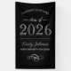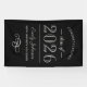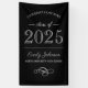El elegante y moderno cartel de la fiesta de graduación de personalizado "Felicitaciones Clase de 2023" presenta un clásico esquema de color negro, blanco y gris plateado con un acento de diseño de desplazamiento. Personaliza con el nombre y la escuela del graduado. Nota: los colores de diseño se pueden personalizar para coordinar con otros colores del fiesta o de la escuela.