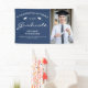 Celebra el hito de tu graduación con estilo con este cartel de la fiesta de graduación. La parte izquierda muestra las palabras "Felicitaciones a nuestro graduado" en texto blanco decorado con un par de tapas blancas de la placa de mortero sobre un fondo azul marino, mientras que una foto vertical del grado aparece a la derecha. Personalízalo con el nombre de tu graduado, la escuela y el año de graduación.