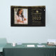 Este cartel de graduación de personalizados para celebrar a tu graduado incluye una foto a la izquierda enmarcada en falso oro acentuado por un purpurina de imitación de oro en un fondo negro. A la derecha en falso guión de oro se lee "Felicitaciones" y debajo de "graduado 20XX" con tu nombre y escuela para personalizar. Diseñado por la artista Susan Coffey