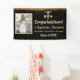 Modern Black & Gold Purpurina Nurse Graduation Banner incluye purpurinas dorados en los bordes superiores de la pancarta, una foto personalizado, el símbolo médico caduceus y una plantilla de texto elegante. El material de la pancarta se establece como interior, si quieres la pancarta para afuera cambia el material a exterior. Haga clic en el botón de personalización para personalizar en tu propio texto e imágenes.