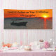 Qué banner único para una fiesta de jubilación o graduación. Un fondo de nuestra fotografía original de un barco pesquero en silueta al atardecer, con el cielo naranja. Dos líneas de texto negro de su elección - adecuado para cualquier ocasión.Seleccione Material interior o exterior. Todos los derechos reservados © 2016 Alan & Marcia Socolik.