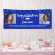 Lona Graduación Plata Confetti Script Foto Royal Blue