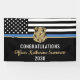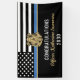 Este diseño incluye una bandera de la fuerza policial con rayas blancas y negras, y una delgada franja azul. Una gran manera de felicitar al nuevo graduado de la academia de policía. Personalizar con el nombre del oficial encargado de la aplicación de la ley graduado en oro. ¡Celebra este hito con estilo!